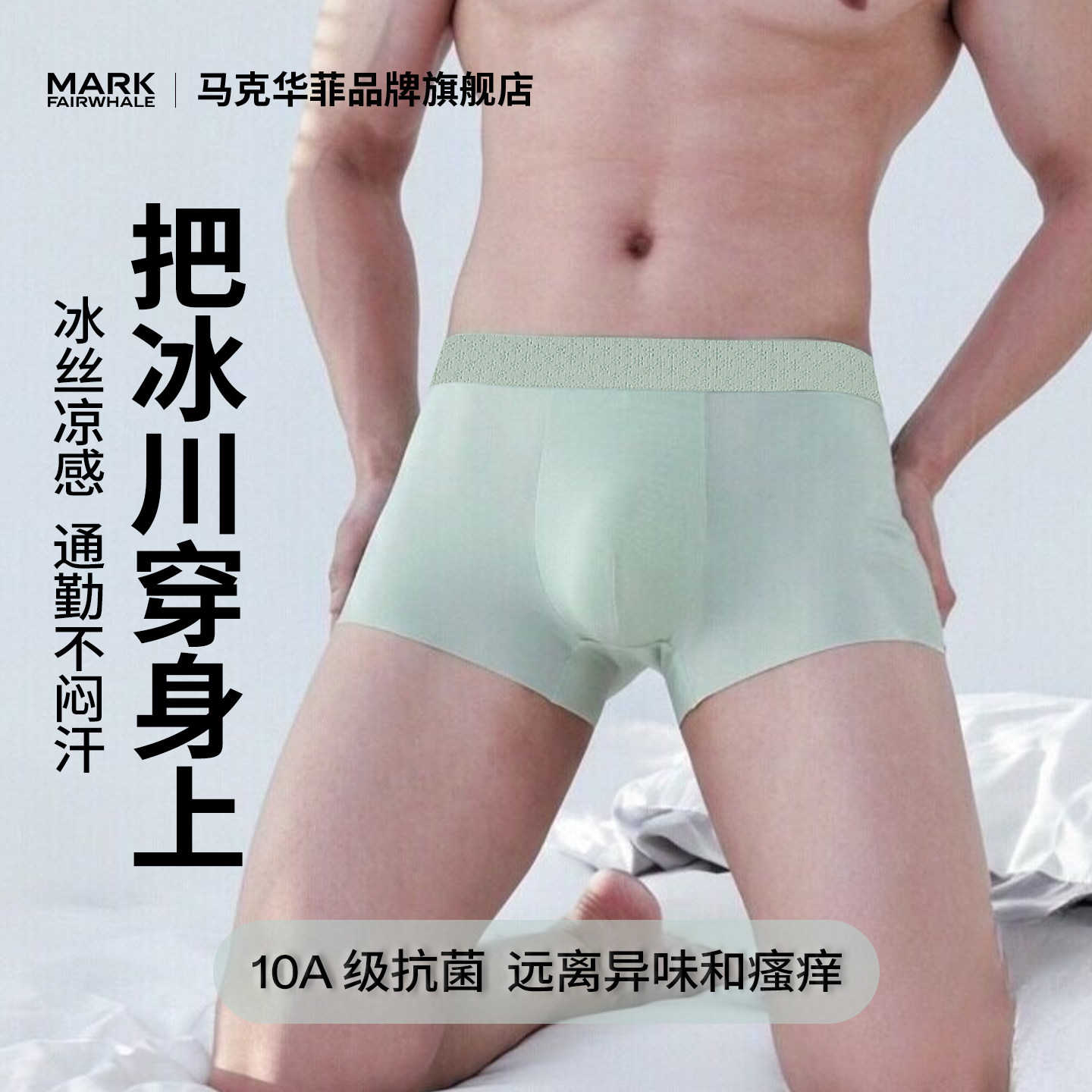马克华菲新款男士冰丝凉感平角内裤四角裤抗菌高弹无痕透气轻奢