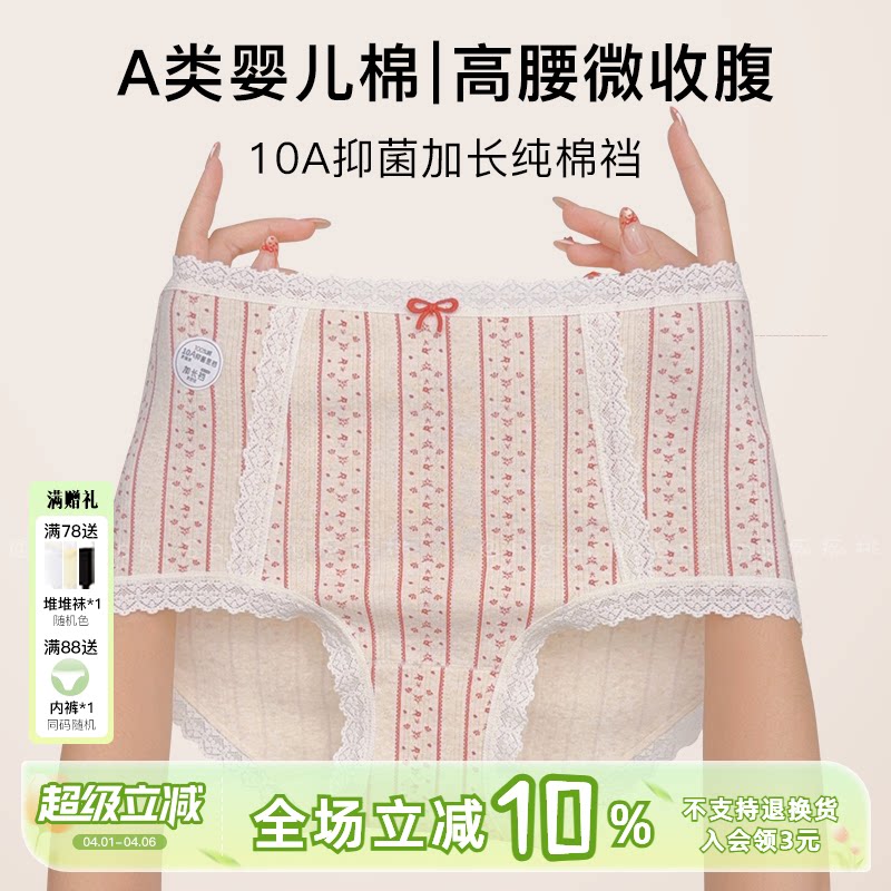 小花事~法式独特绝美高腰微收腹女士内裤春夏新纯棉加长裆10A抑菌