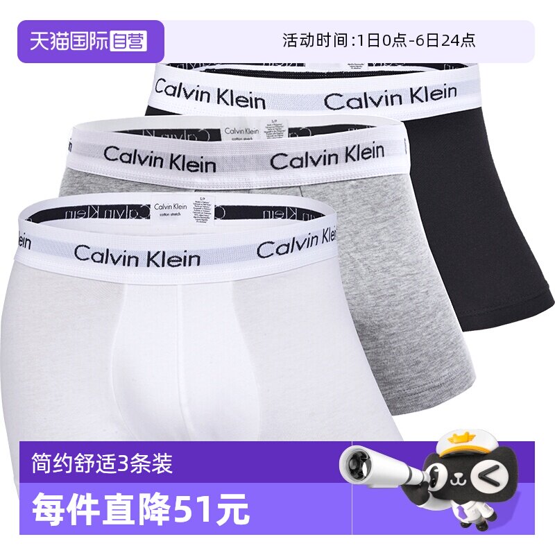 【自营】Calvin Klein/凯文克莱男士平角内裤CK简约舒适3条装