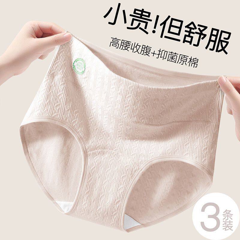 100%纯棉高腰收腹提臀内裤女7a抗菌全棉加长裆透气大码女士三角裤