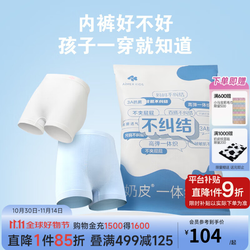 爱慕儿童(AIMER KIDS)无感印标奶皮一体织2条装儿童内裤男女童中腰平角裤无缝3A抗菌A类 男孩-海盐+奶冻 130