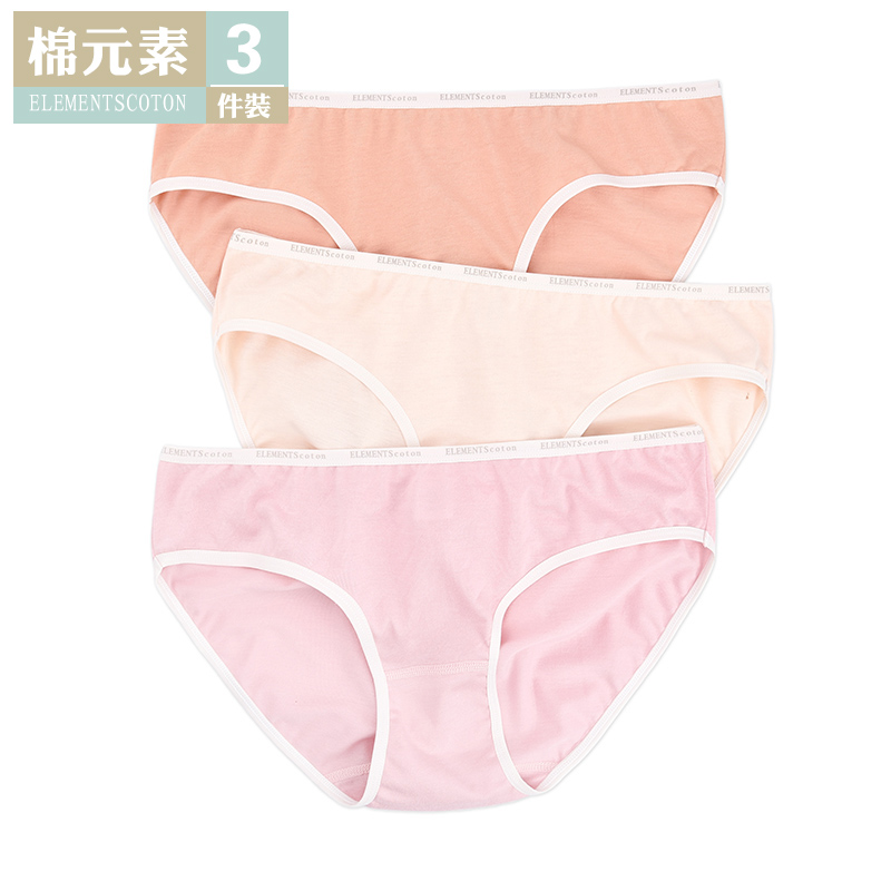 棉元素女内裤中低腰纯棉简约纯色字母舒适女士三角裤三条装LB637