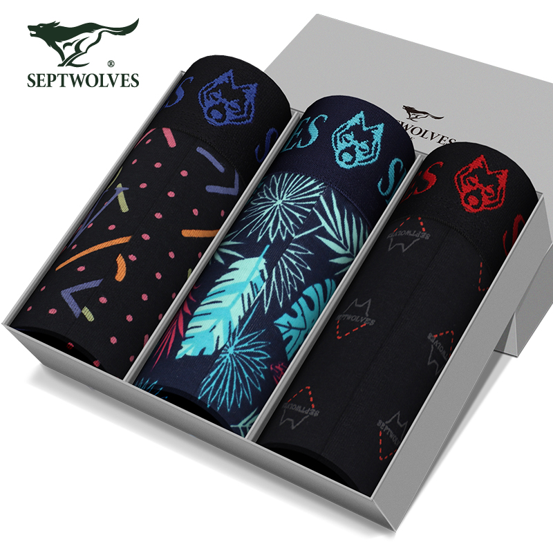 七匹狼男士内裤纯棉薄款平角裤舒适透气男生四角短裤头抑菌弹力棉