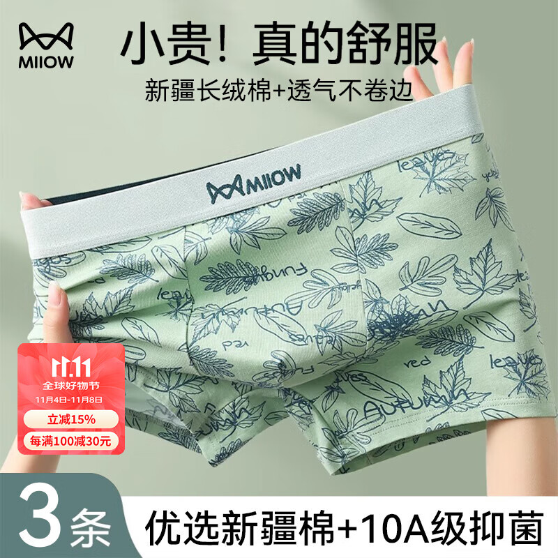 猫人男士内裤男纯棉印花平角裤10A抗菌宽松大码男生四角裤头透气短裤