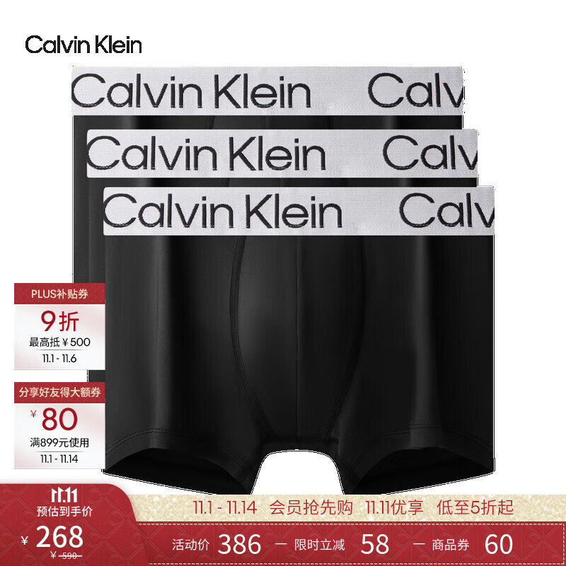 Calvin Klein内衣25秋季新款男士三条装醒目提花ck棉质防夹臀四角裤平角内裤男 ZBF-太空黑/大理石灰/庞贝红 M
