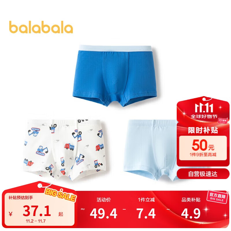 巴拉巴拉男童内裤平角棉四角裤男孩底裤亲肤弹力不夹PP三条装208924170108