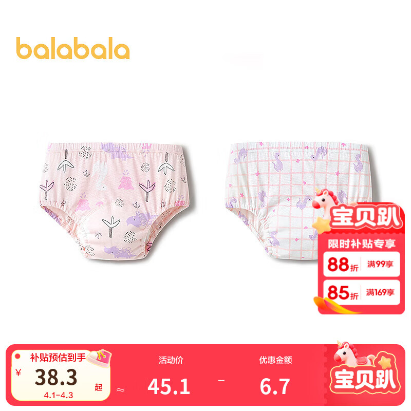 巴拉巴拉宝宝如厕训练裤棉男女童三角短裤婴儿内裤戒尿不湿两条装 白红色调00316 100