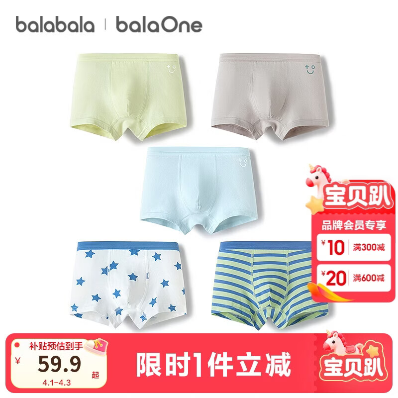 巴拉巴拉童装儿童内裤棉a类男童平角短裤2026新款宝宝四角裤五条装亲肤