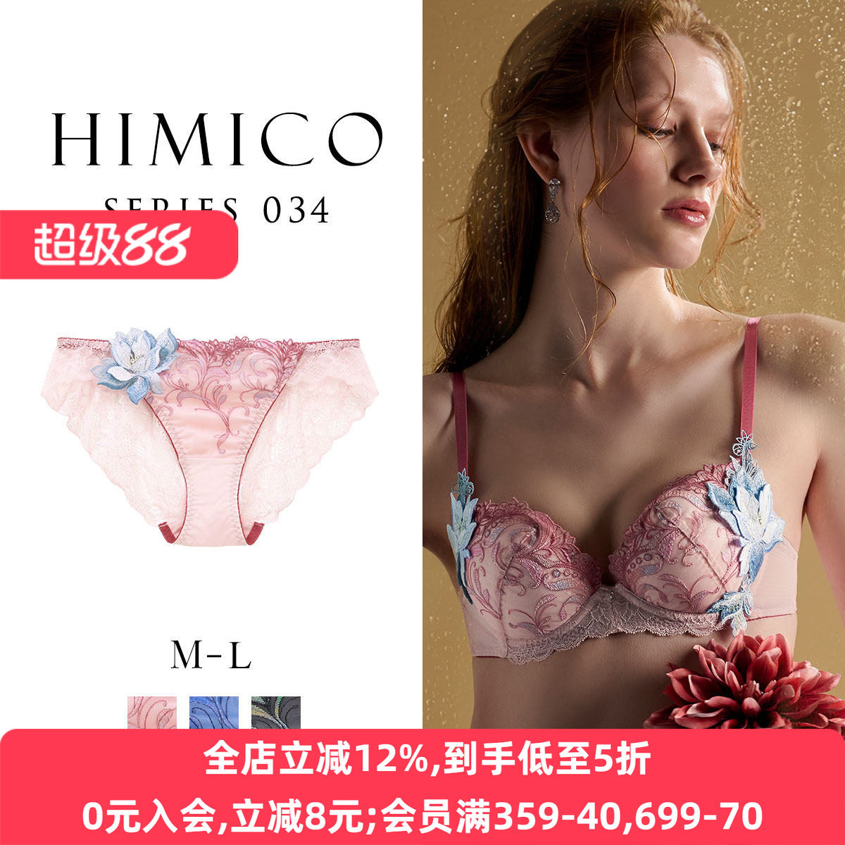 HIMICO内裤女日系透明蕾丝重工刺绣性感纯欲无痕低腰三角内裤034