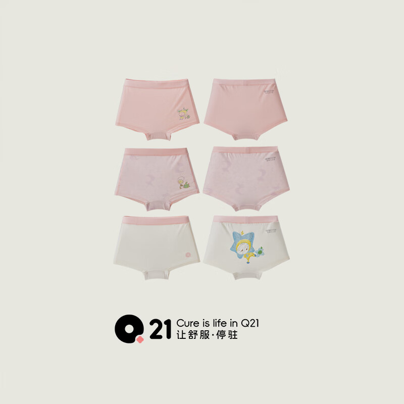Q21小海绵儿童净化裤5A男女童宝宝四角短裤女孩三角内裤3条装 花嘟粉嘟嘟粉阿嘟白 120 cm