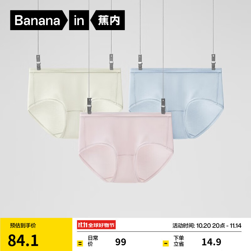 蕉内(Bananain)银皮508S女士内裤60支莫代尔抗菌棉裆柔软透气女式中腰三角裤3件 【低脚】灰烟紫+水绿+雾蓝 3条 M