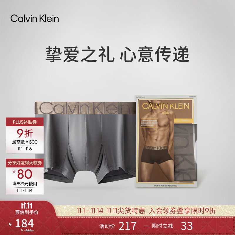 Calvin Klein内衣【炫光引力带】男士ck光泽腰边细滑防夹臀平角内裤男NB2540 5GS-灰色 1条 M