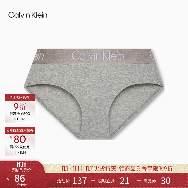 Calvin Klein内衣女士简约循环提花腰边ck舒适棉质微弹半包臀防夹臀三角内裤女 P7A-椰青灰 1条 M