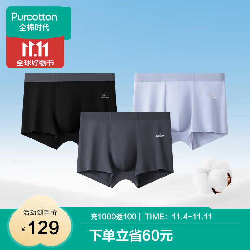全棉时代凉感男士内裤纯棉四角短裤中腰 棉墨黑+星系灰+星灰蓝 XL (180)