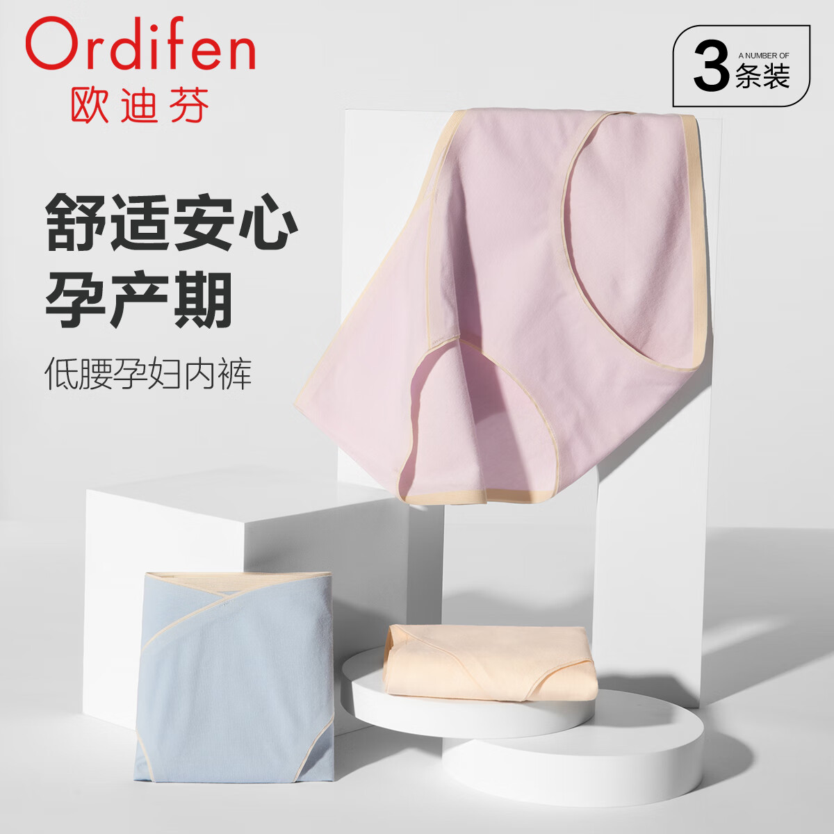 欧迪芬(Ordifen)孕妇内裤女棉低腰透气吸汗孕产妇托腹薄款3条装送女友XK3A06 三混色1:软玉紫+夏日蓝+玉粉橘 XL (170/100)