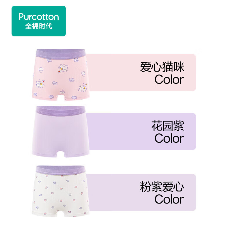 全棉时代儿童内裤男女童内裤5A抗菌 爱心猫咪+粉紫爱心+花园紫