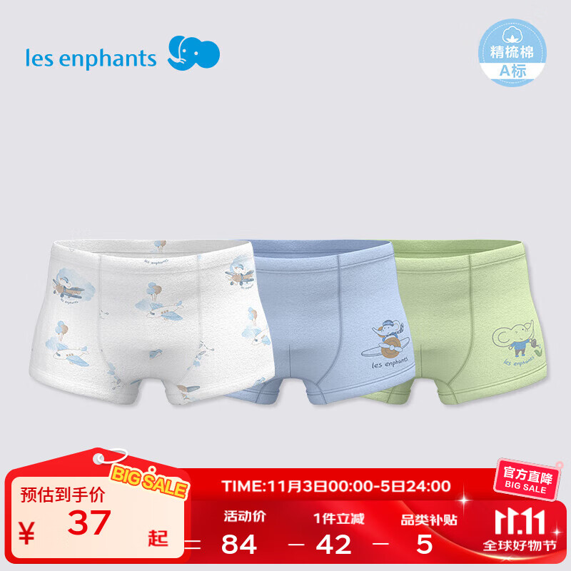 丽婴房【5A抗菌】儿童内裤5A抗菌内裤A类平角内裤全棉内裤3条女童内裤 活力飞行-男童(5A抗菌纯棉) 3条 120 cm