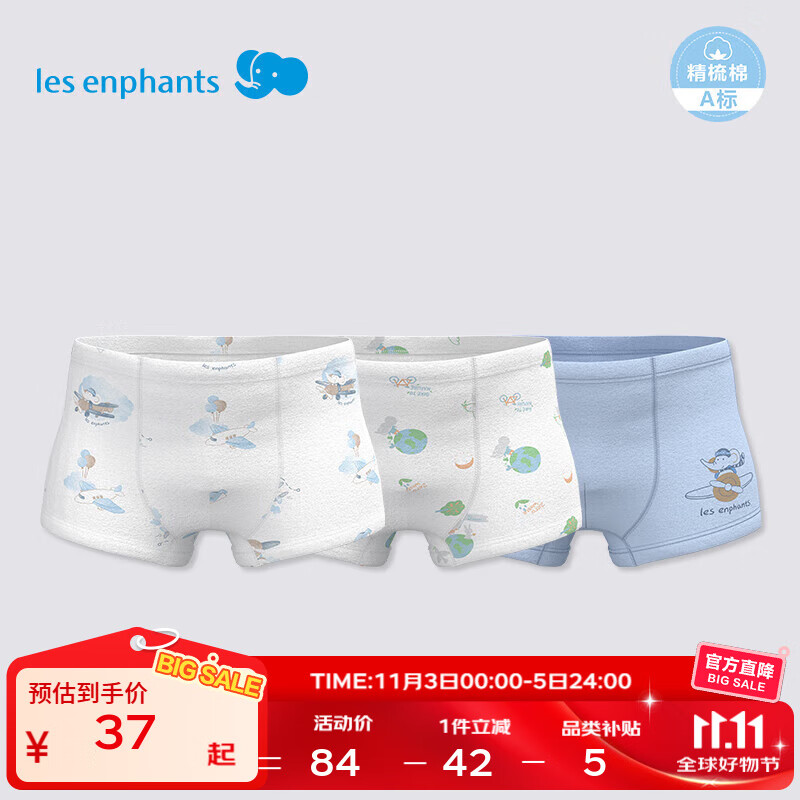 丽婴房(Les enphants)【5A抗菌】儿童内裤5A抗菌内裤A类平角内裤全棉平角女童内裤3条装 蓝色飞行-男童5A抗菌纯棉 3条 130 cm