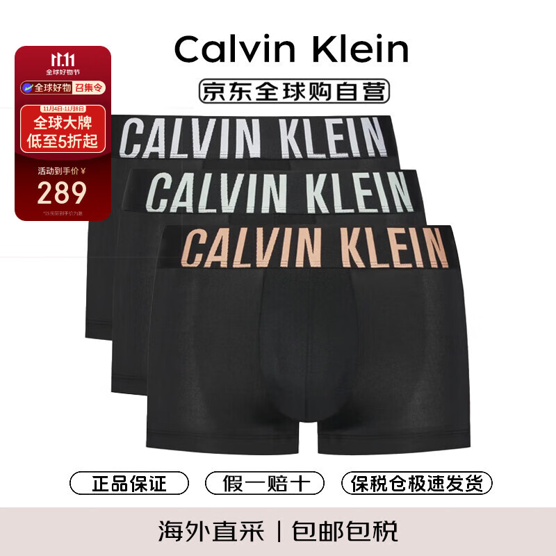 Calvin KleinCK 男士平角内裤 3条装 000NB3611A VVN黑/黑/黑 M