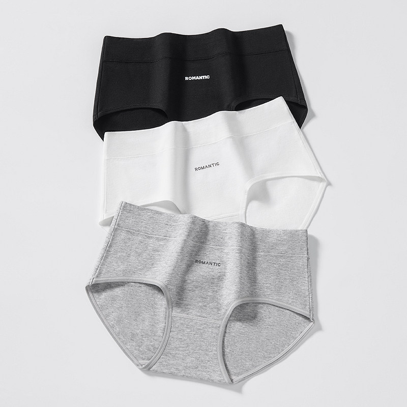 纯白色全棉中腰简约舒适女士内裤女纯棉黑色灰色女生大码三角裤头