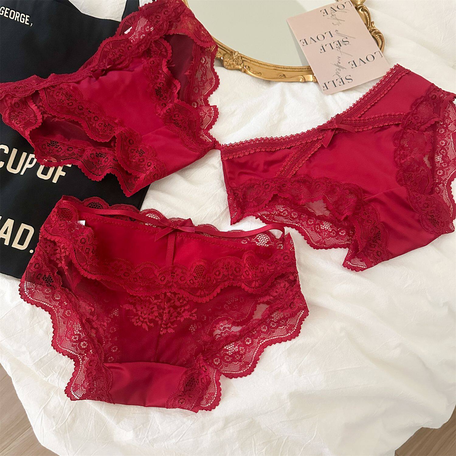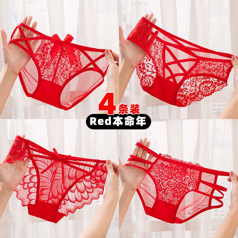 四条红色本命年内裤女网红爆款蕾丝女士内裤纯棉裆抗菌性感三角裤