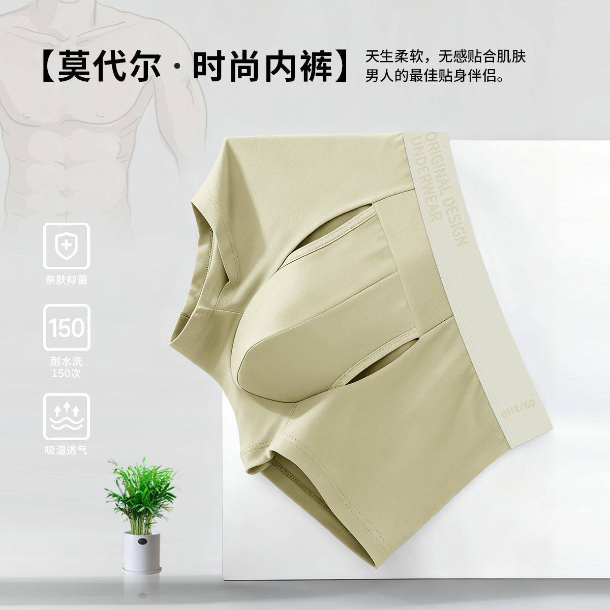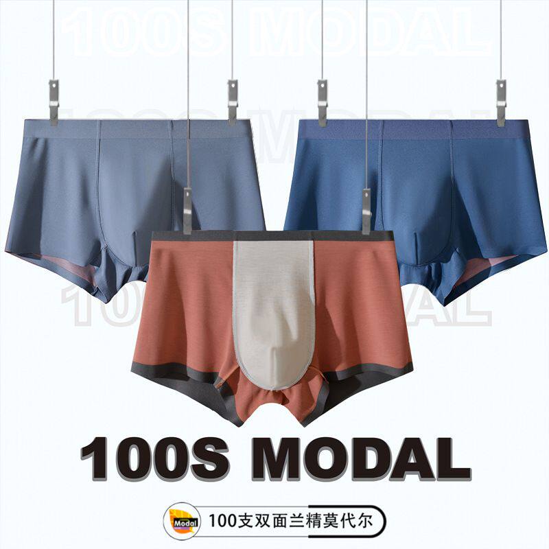 100支双面0感莫代尔男士内裤冰丝抗菌四角短裤撞色无痕男生平角裤