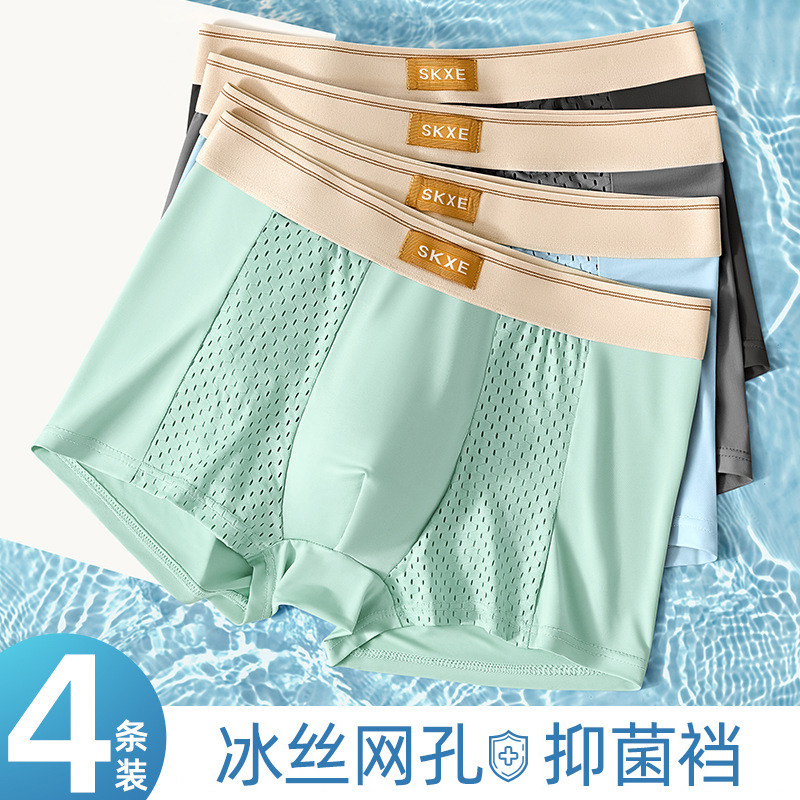 男士内裤网眼夏季薄款冰丝四角裤头男生网孔透气四角平角青少年