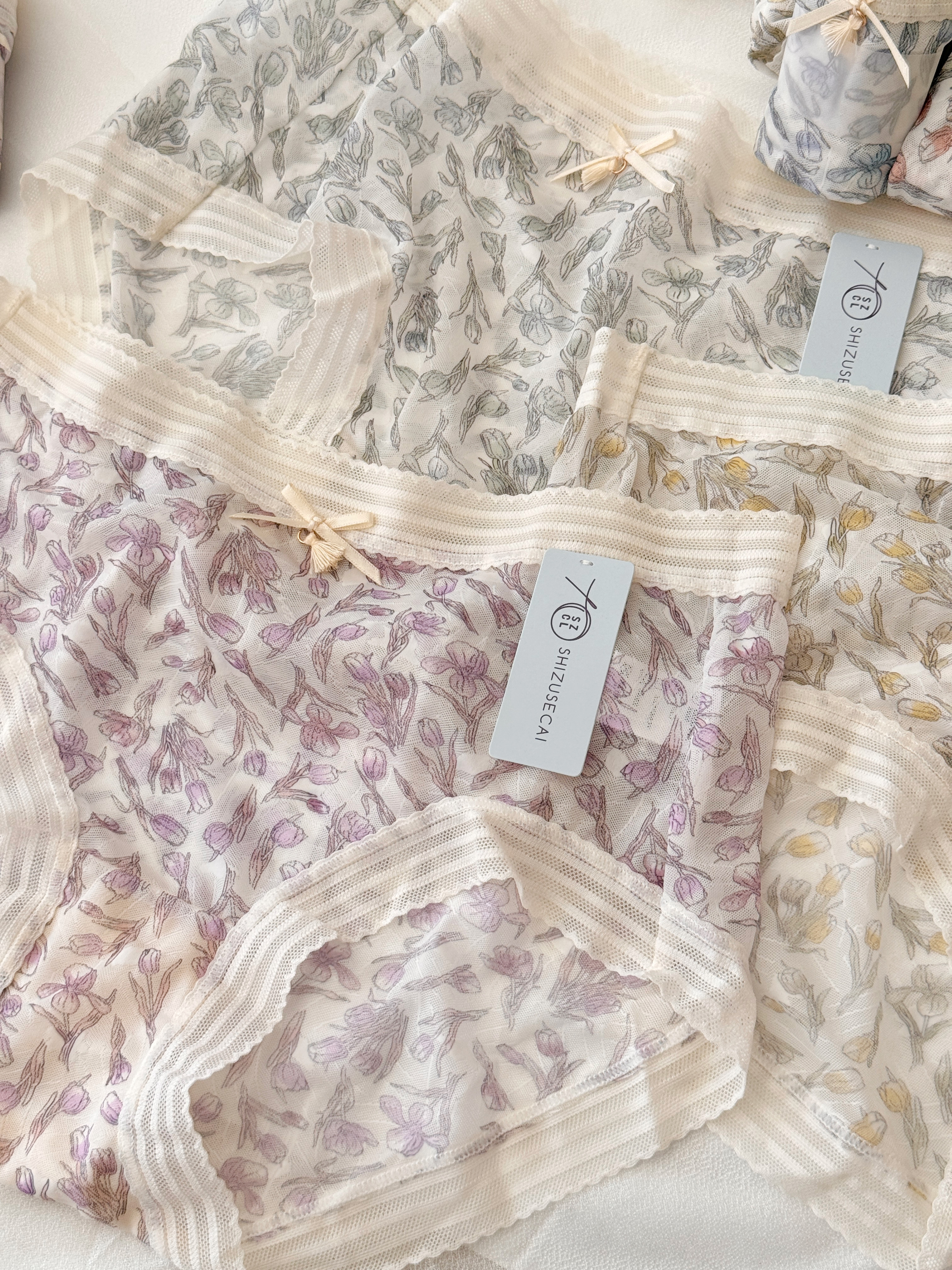 十足色彩内裤No.3249碎花网纱轻薄透气蕾丝甜美中腰舒适抑菌内裤