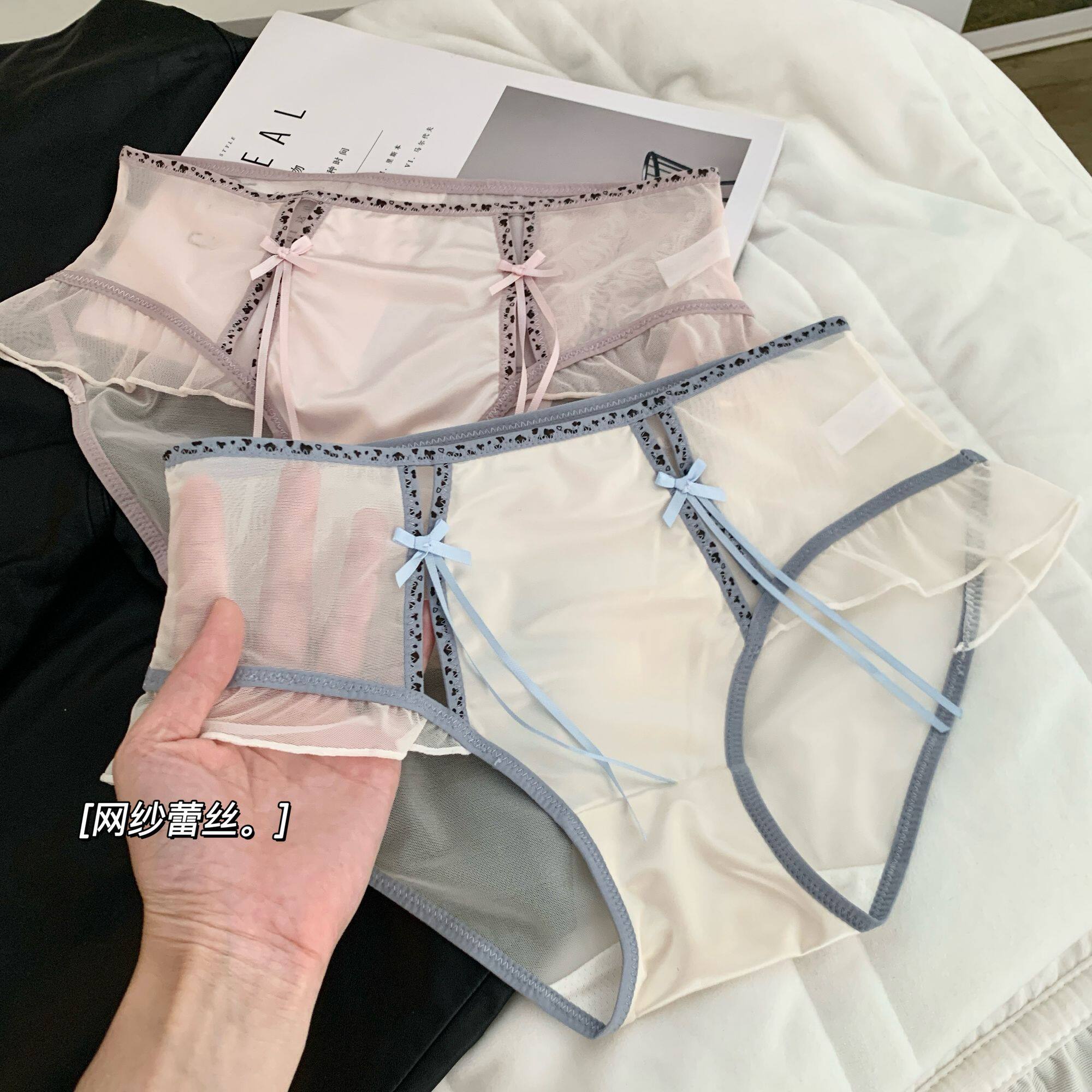 性感纯欲风缎面网纱镂空内裤女生纯棉裆新款中腰女士三角裤头