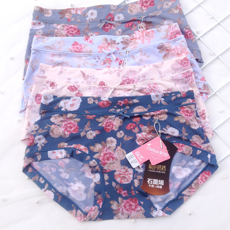 彩田新款内裤女印花冰丝速干高腰特大码微收腹加肥包臀女士裤头薄