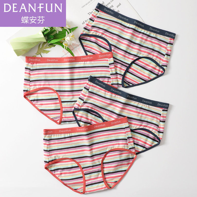 蝶这芬女士内裤女性感条纹中腰平角莫代尔棉柔软舒适收腹提臀裤头