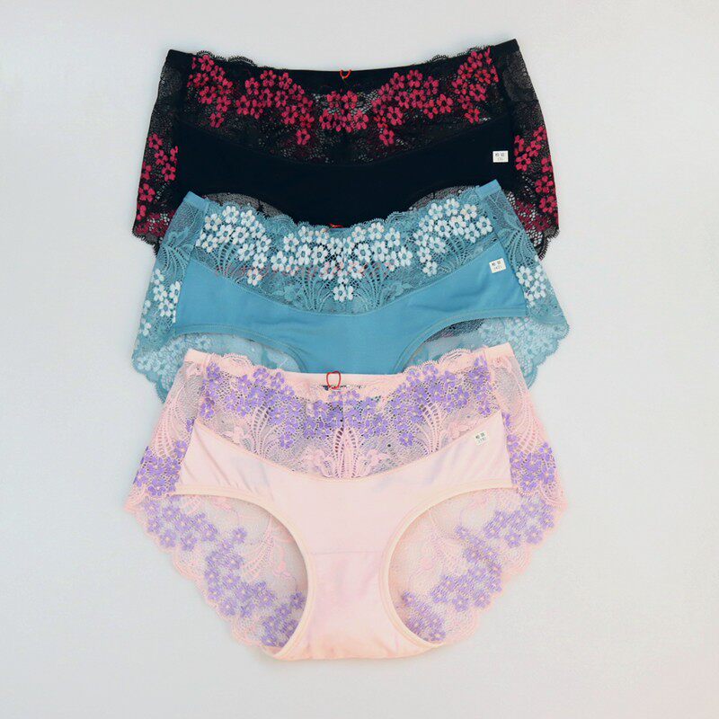 包邮一组5条 甜美蕾丝内裤女款 网纱夏季透气底裤三角裤 抑菌底裆