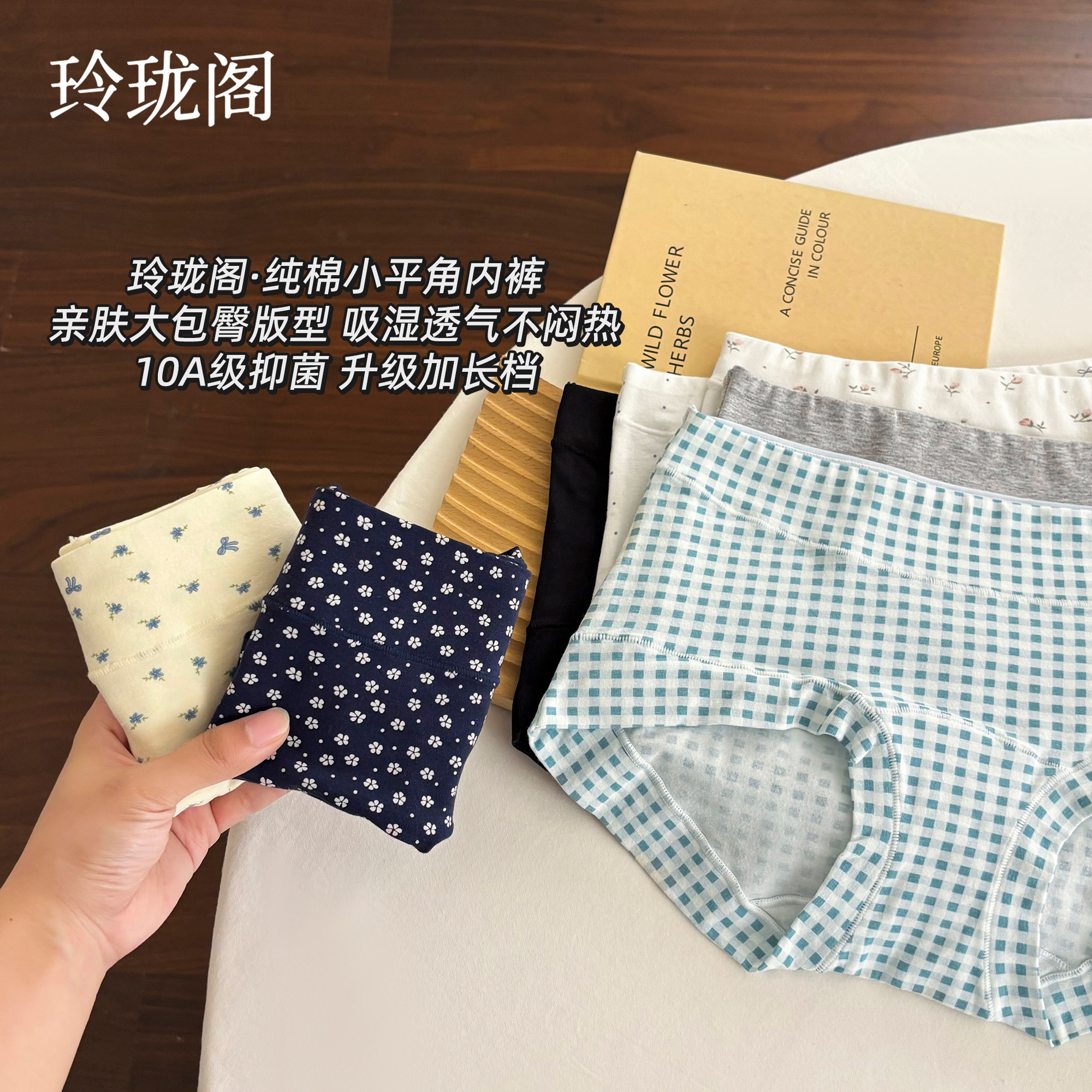 棉文化女士内裤100%纯棉新疆棉平角裤全棉中腰性感条纹薄底裤抗菌