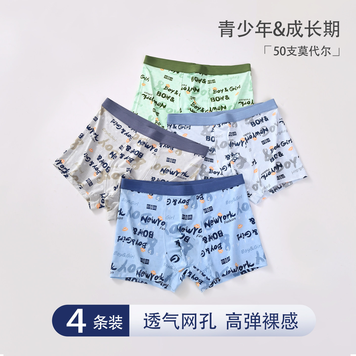 内裤男生大童青少年莫代尔冰丝平角裤纯棉裆高初中学生四角短裤头