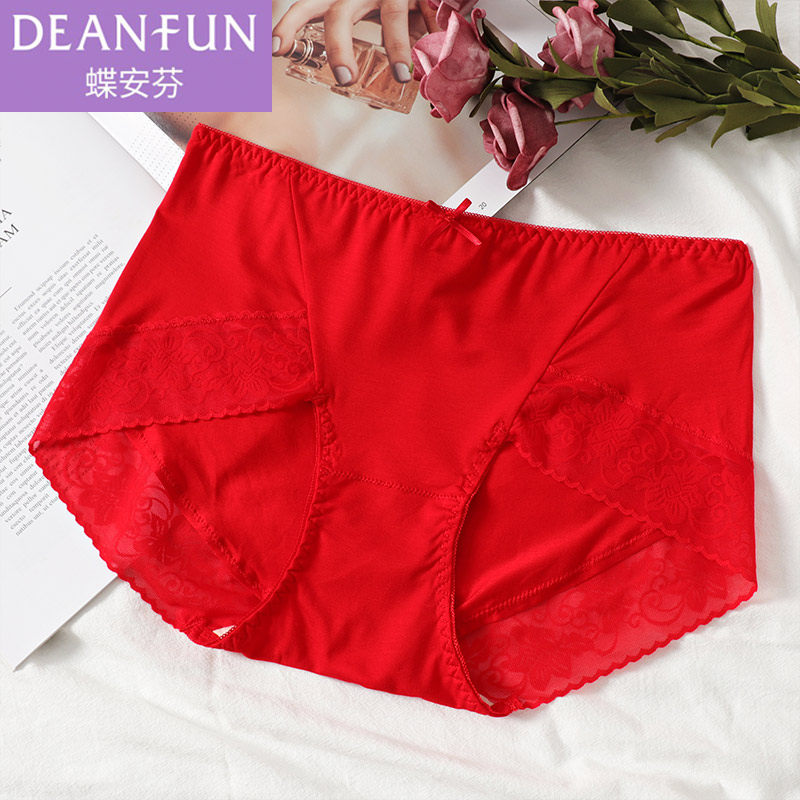 蝶安芬女内裤女士内裤本命年大红色婚庆中腰平角蕾丝花边纯棉裆盒