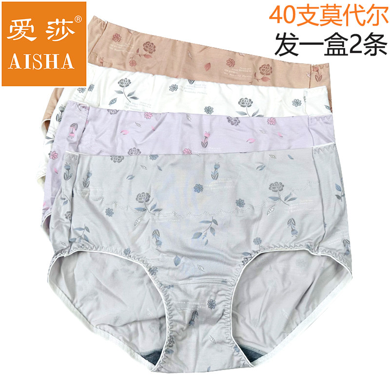 新品爱莎莫代尔女士内裤中腰包臀80支莫代尔中腰女式小平角女内裤
