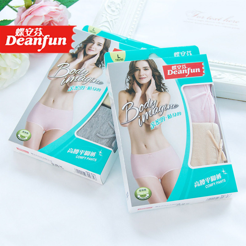 包邮盒装抗菌纯色棉质蝶安芬975莱卡中高腰女士平角内裤高弹舒适