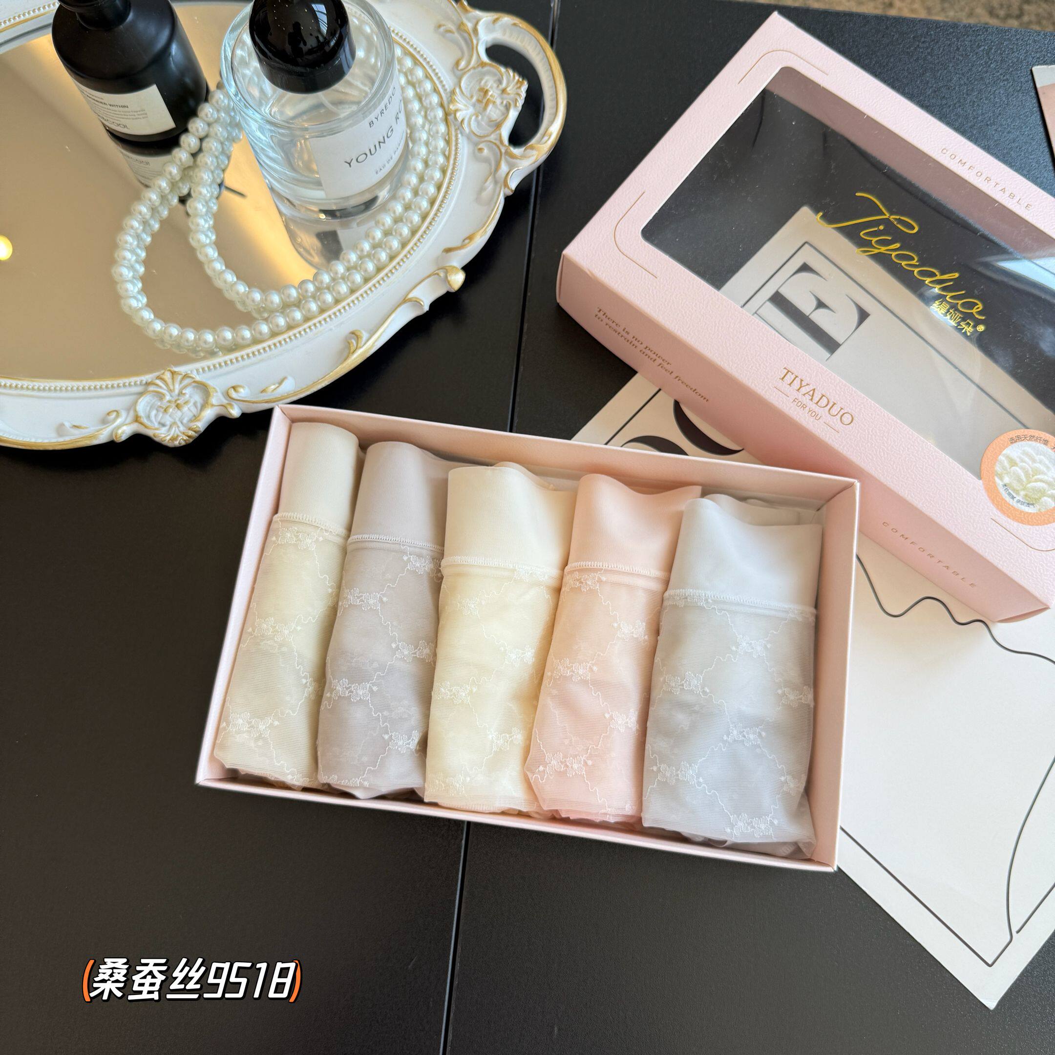 缇娅朵9518超薄飘飞透气蕾丝内裤女中腰包臀舒适柔软桑蚕丝三角裤