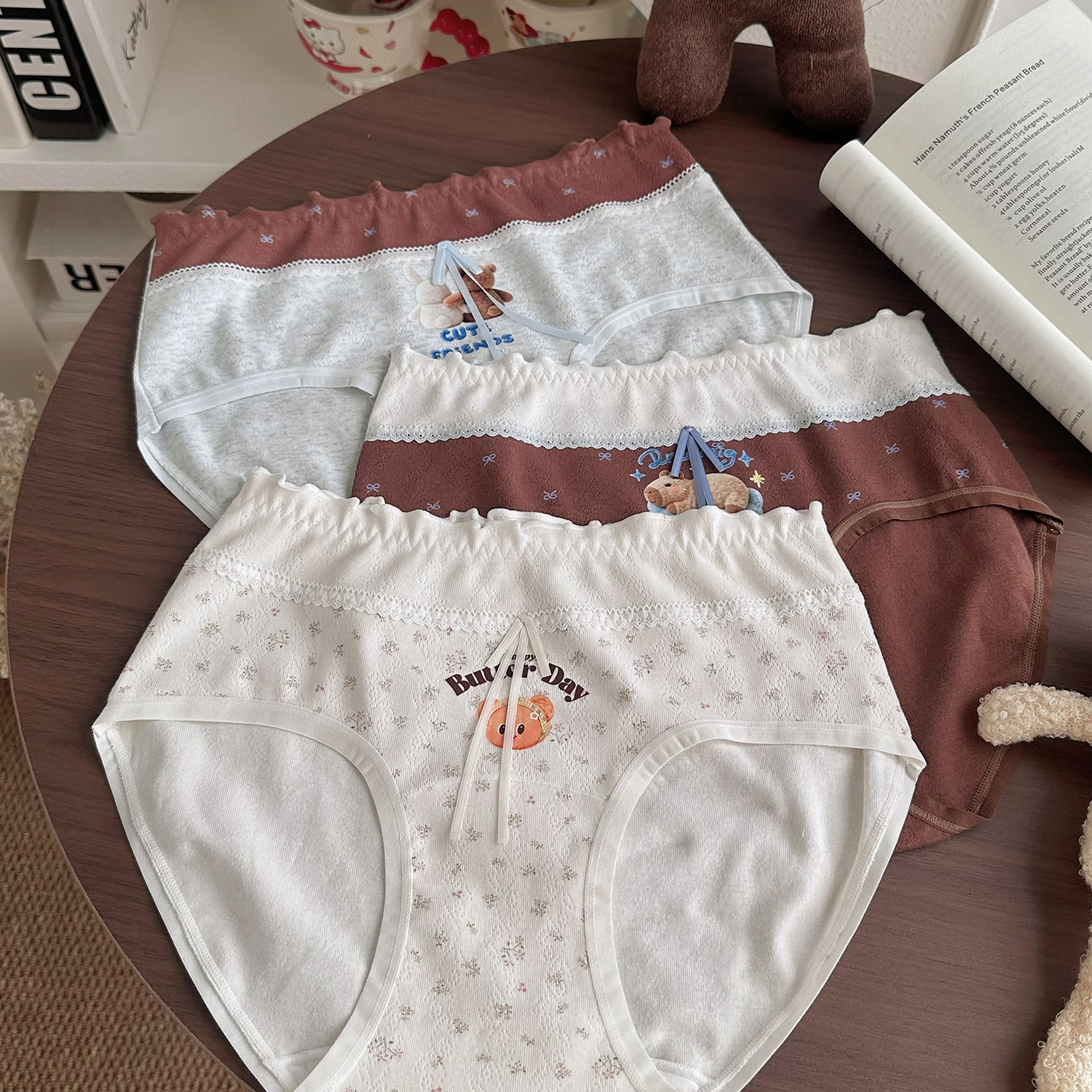 探路猫 法式复古碎花蝴蝶结纯棉亲肤舒适少女中腰包臀内裤三角裤