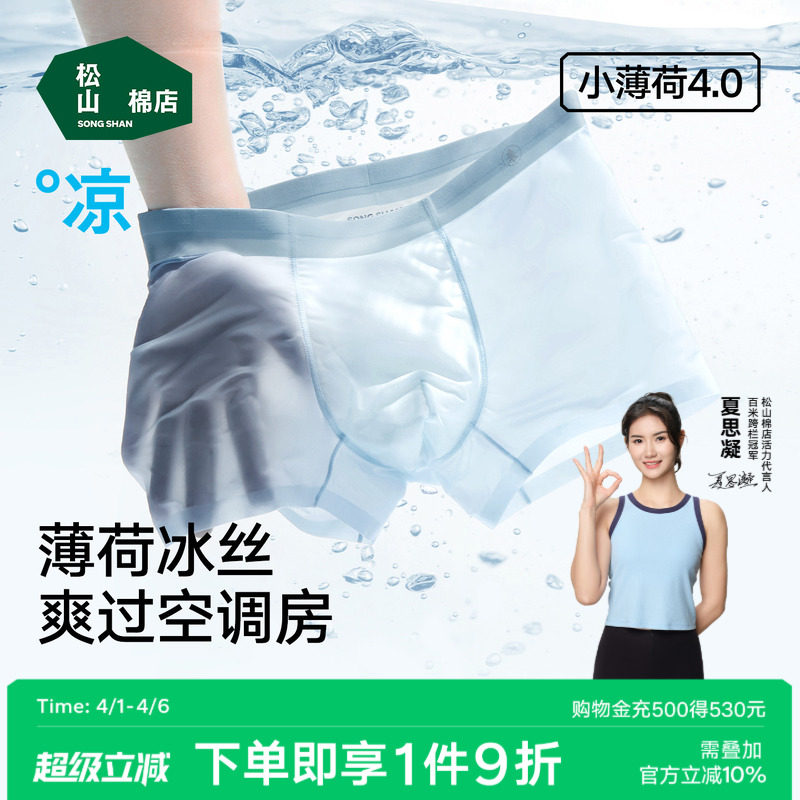 松山棉店小薄荷清爽男士冰丝无痕内裤青少年轻薄平角裤短裤四角裤