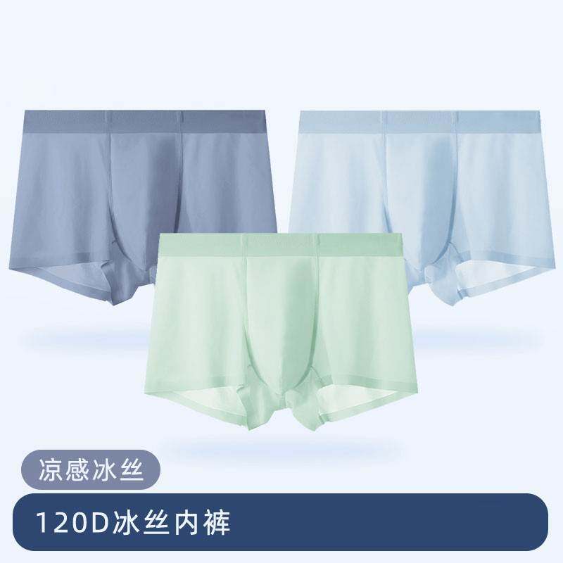 2件装男士内裤超薄面膜冰丝裤无感无痕超透气夏季凉感素色简约裤