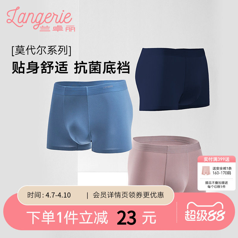 【3条装】兰卓丽无痕内裤男抑菌底裆短裤四角裤舒适裤头平角裤衩