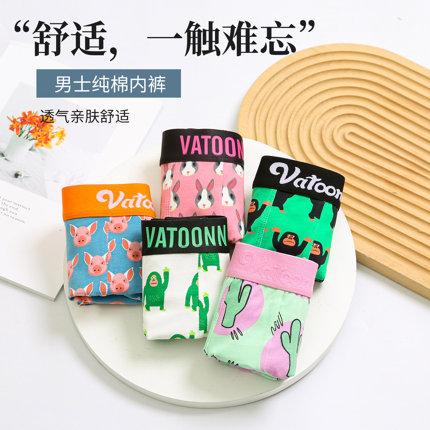男士纯棉内裤中腰卡通印花潮流抗菌裆大码宽边透气运动青年裤衩