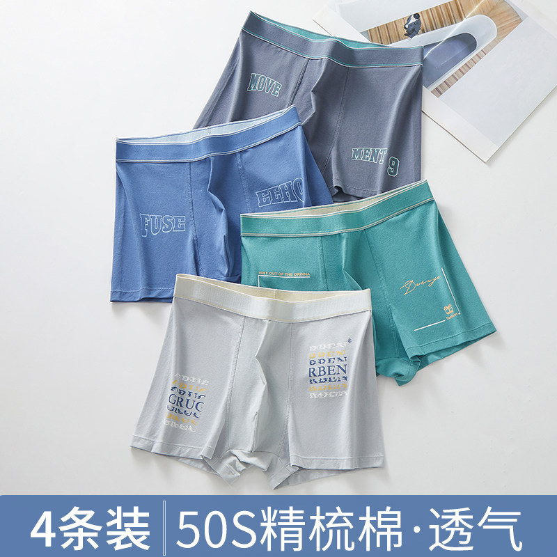 新款男士内裤纯棉平角裤透气字母个性四角裤衩四季抑菌裆潮男内裤