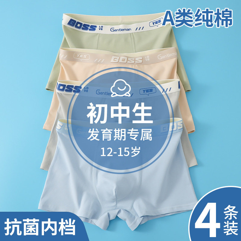 青少年A类内裤男童发育期初高中学生平角裤大童男士纯棉四角裤衩
