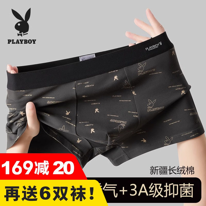 花花公子纯棉男士内裤100%全棉男生平角四角裤衩短裤男款春夏男式
