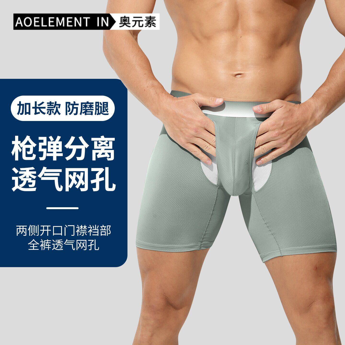 3条 男士运动内裤防磨腿夏季薄款冰丝男生跑步加长枪弹分离四角裤