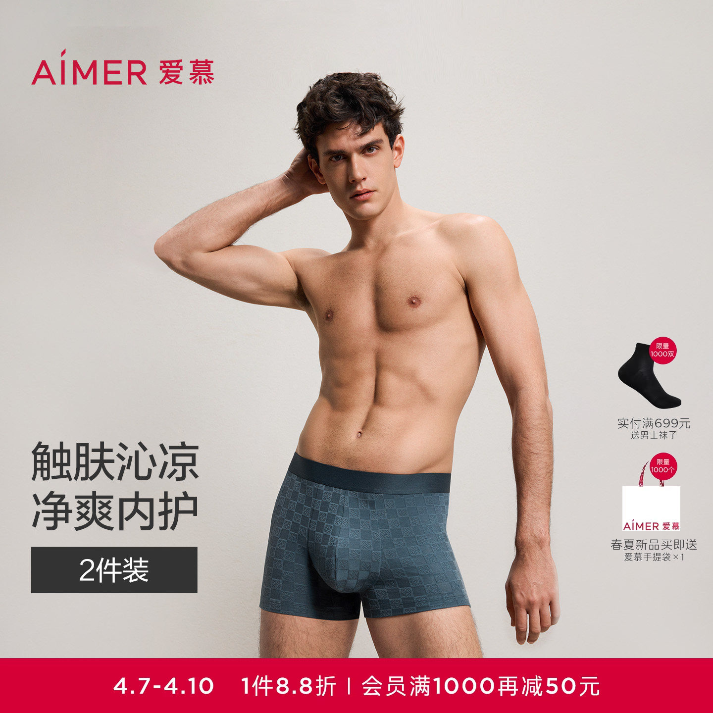 【沁凉肌理两件包】爱慕先生含莫代尔内裤创意印花平角裤2026春夏