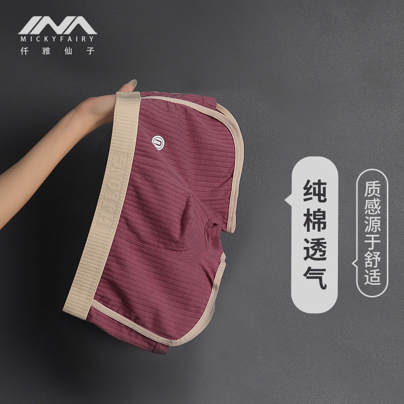 维姆工作室 复古撞色纯棉内裤男生舒I适男士平角四角短裤衩青年