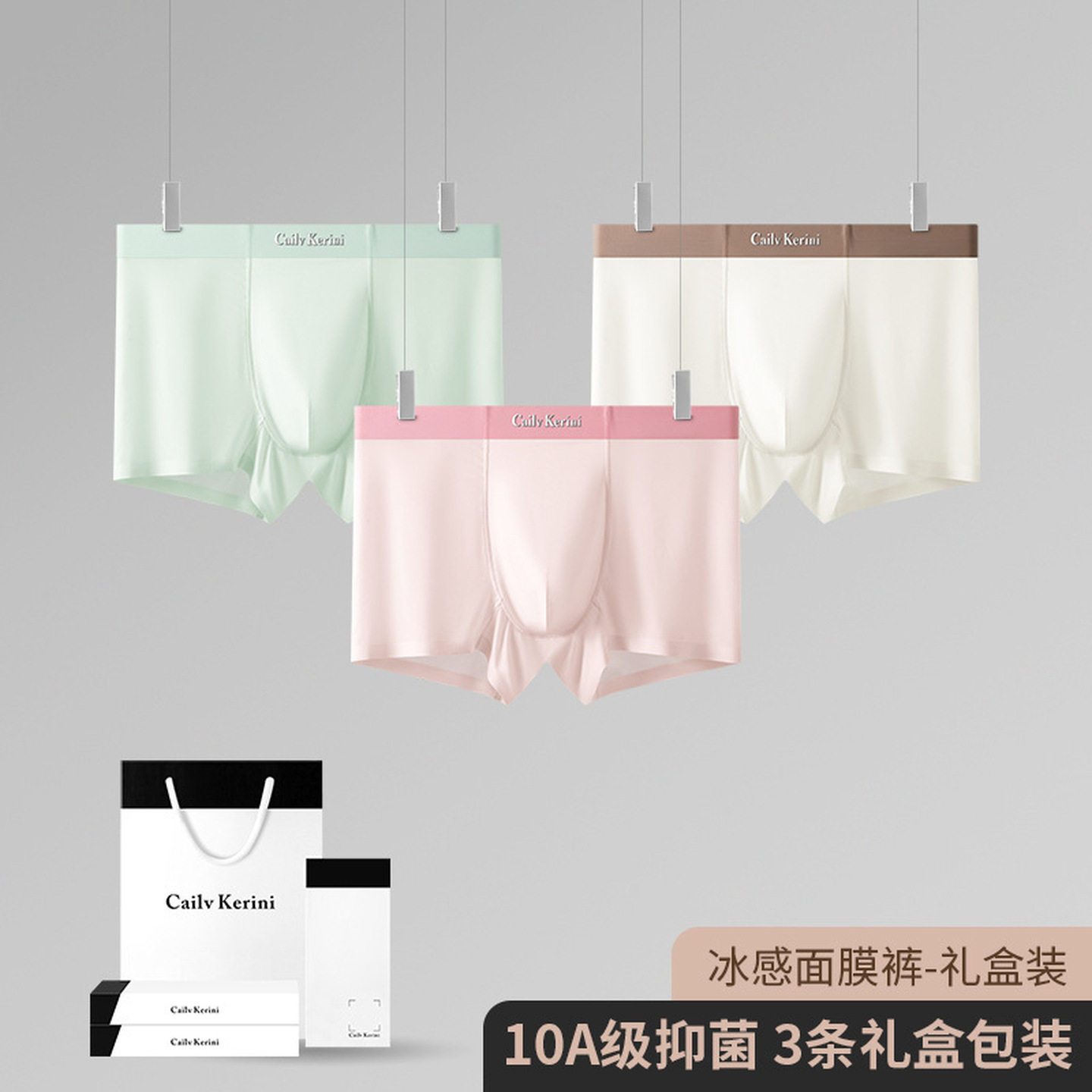 2026新款礼盒装冰丝面膜超薄男士内裤中腰送男朋友520礼物平角裤